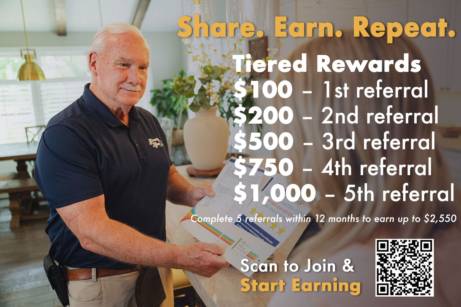 - Projects must be completed within 12 months from your first qualifying referral to be eligible for tiered rewards.